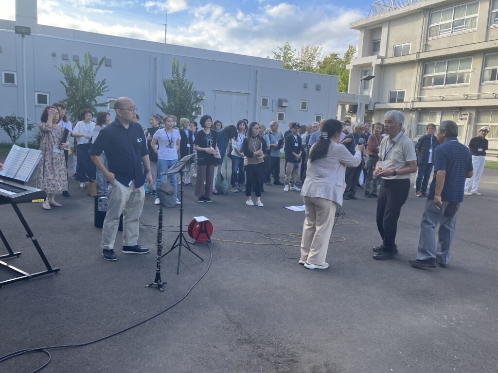 朋友会も9月20日に横高で、在校生も含めて約20名で練習を行いました。出し物が毎年同じこともあり、私が初めて参加した去年も1回だけの練習でした。が、本番で初めてお目にかかる方も含めて約30名、まったく息の合った歌唱だったのには驚きました。
