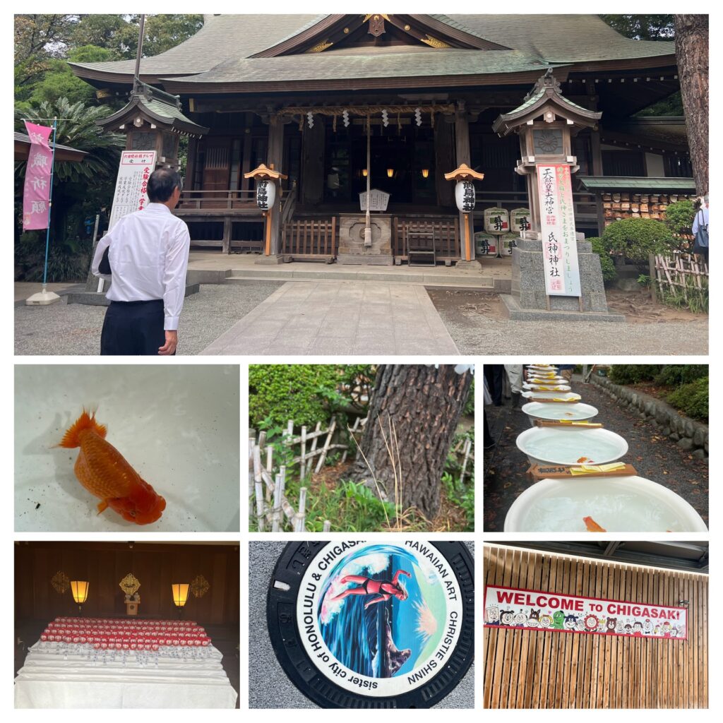 昼食は大山の麓の愛宕滝近くの山荘で豆腐づくしの料理を味わった。平塚の前鳥神社は参道ではランチュウの競技会が開催されていた。万葉仮名では左喜登利神社、大神は応神天皇の皇太子で論語や千字文などを日本で最初に学び産業技術の導入を計られたとある。境内には奨学神社も座して祈願成就したミニだるまが無数に奉納されていた。大木の松は三つ葉の他に四つ葉もあり見つけると幸せになれるそうだ。