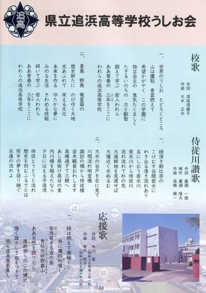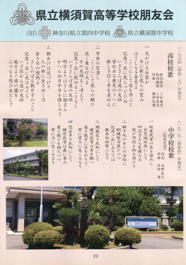 校歌祭への参加と学校紹介などすべてに毎年尽力くださって懇親会の手配まで引き受けていただいた横高OG久場今日子さん、会場撮影とプログラム編集に携わっていただいた横高OB和田良平さん、そして「侍従川讃歌」選曲にご尽力くださった追浜高校OG秋元昌子さんには多大なる感謝を申し上げます。また、追高の三笠山をいただき、ありがとうございました。