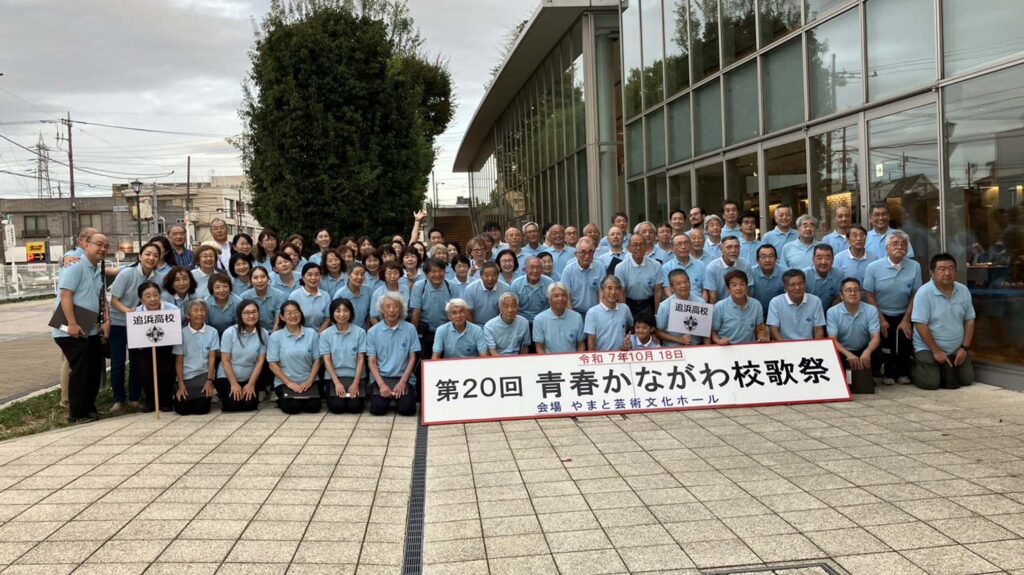 今回、高22期 高橋克己、高22期 高橋揚一、高25期 廣瀬隆夫の3名は、横高のステージだけでなく、追浜高校うしお会のステージでも歌うことになりました。
