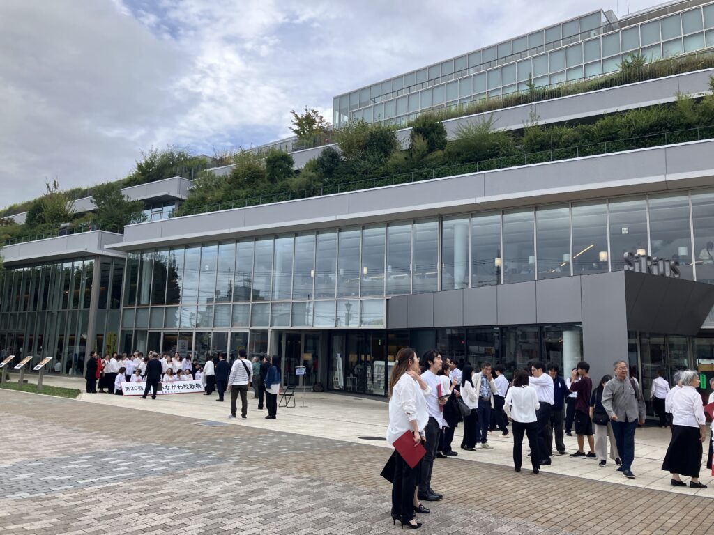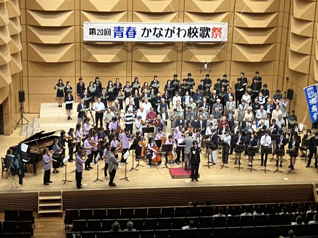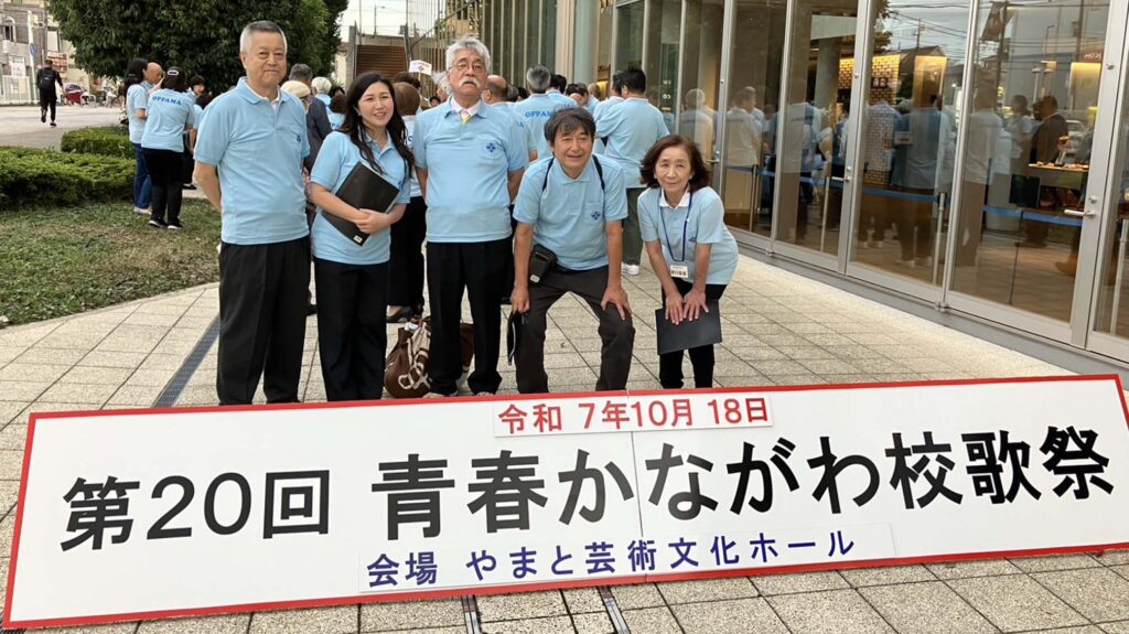10月18日(土)第20回「青春かながわ校歌祭」が開催されました。幹事校は川崎高校。会場は神奈川県内どこからも行きやすい小田急・相鉄線大和駅近くの「やまと芸術文化ホール」。フリーマーケットが連なる大和駅からの銀座通りを抜けて会場へ。第一部の出場校受付は早くも賑わっています。