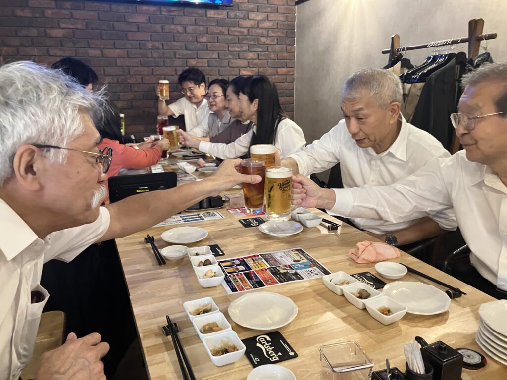 撮影終了後、横高朋友会のメンバーは、大和駅の近くの打ち上げ会場「ウマイファクトリー」で2時間飲み放題の懇親会で盛り上がりました。追浜高校うしお会は、横浜の「崎陽軒」で打ち上げを行ったようです。