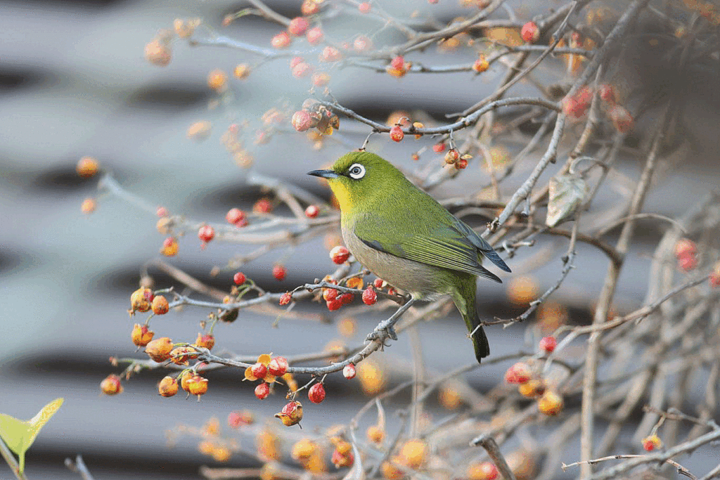 かわいいですね!メジロさんもジョウビタキさんもよく太っていて。きっとお庭にこの赤や橙色の実やおいしい食べ物が豊富なのでしょう。拙宅も以前は、庭の木にメジロ、すずめ、ひよどりなど来ていましたが、高齢と防犯のため、庭周りの木を数本残して伐採したせいか来なくなりました。仕方ないですが。