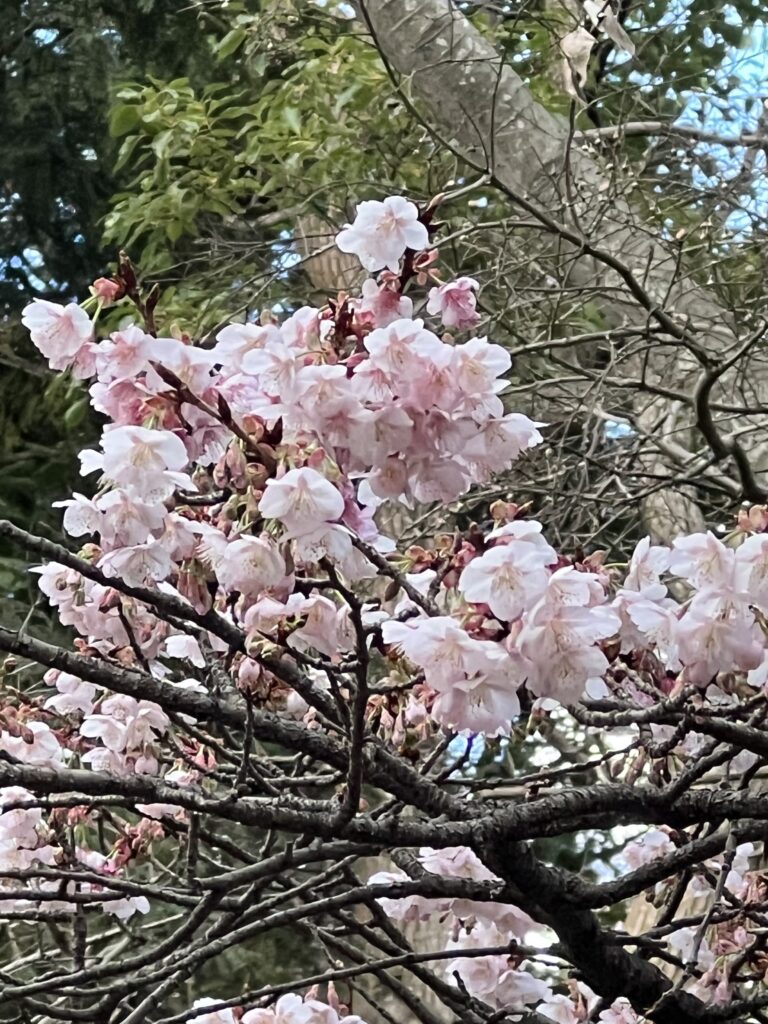 先週のことになりますが、同級生の写真展の帰路、正月の雰囲気の残る鎌倉八幡宮に詣ってきました。梅、八重の桜が一本だけ咲いており、源氏池の寒桜は満開でその周りの牡丹園では菰を被って寒牡丹の饗宴、傍らではあまりの寒さに鳩が目いっぱい羽を膨らませていました。