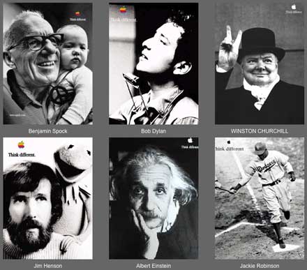 私たちは、そんな人たちのための道具を作る。クレージーと言われる人たちを、私たちは天才だと思う。自分が世界を変えられると本気で信じる人たちこそが、本当に世界を変えているのだから。(1998年1月18日 読売新聞 朝刊の広告より抜粋)