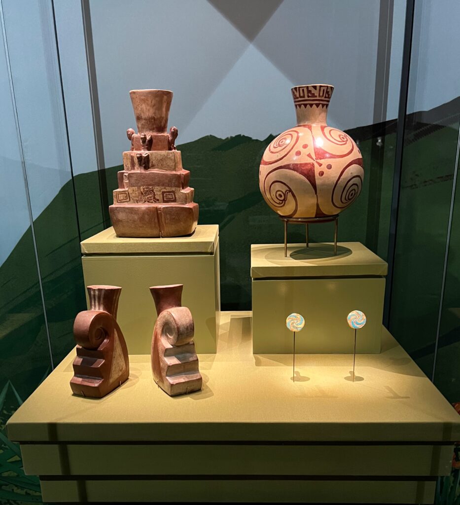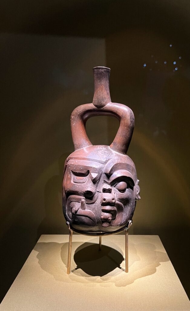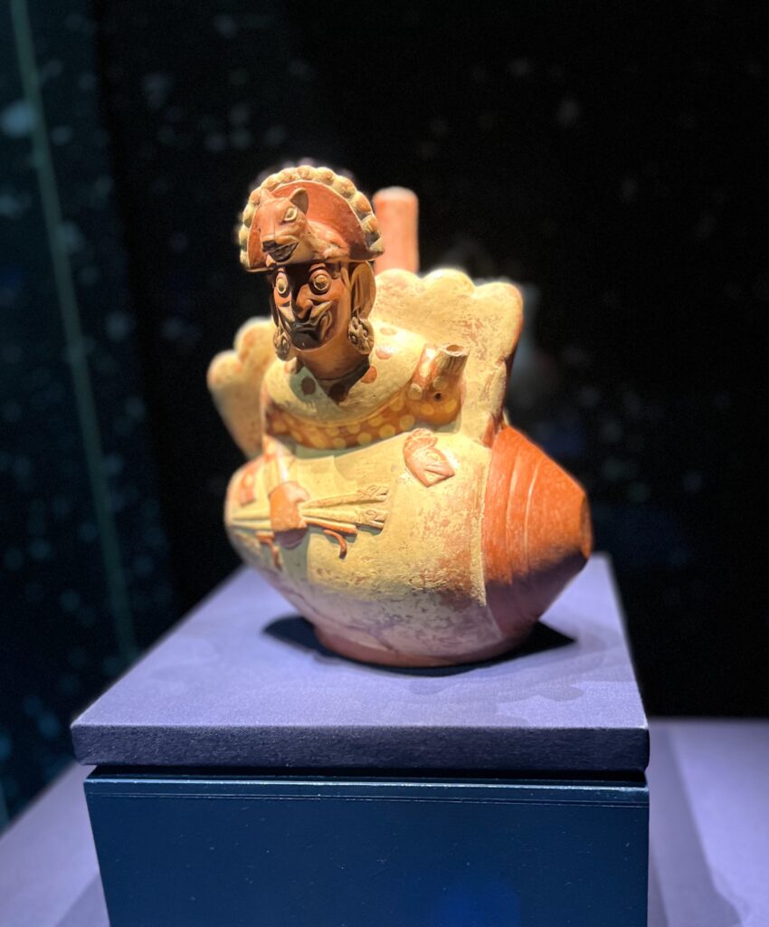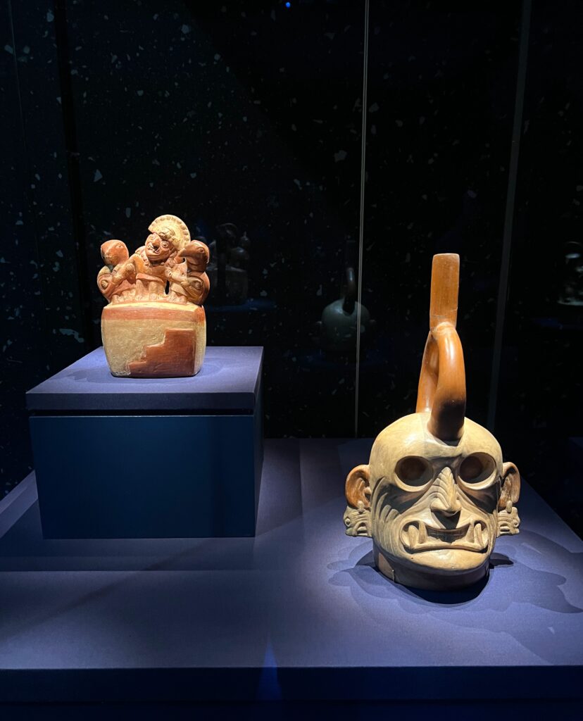 特に印象深かったのは西暦100年~800年頃の「モチェ文化」です。写実的でありながら大胆にデフォルメされた神「アイ・アパエック」の冒険を描いた土器類に目を奪われました。